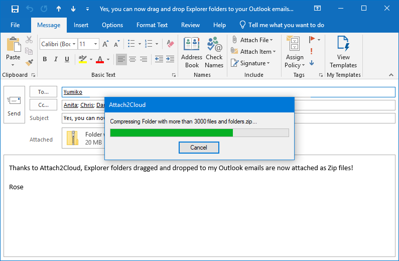 Grâce à Attach2Cloud, vous pouvez maintenant glisser-déposer des dossiers de l’Explorateur Windows dans vos emails Outlook!